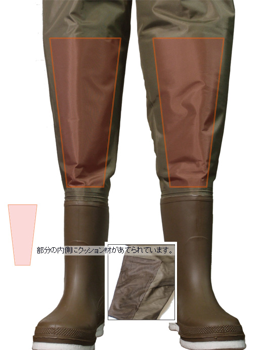 ウェーダー内側は総メッシュ素材からなっており、ベタつきを防いでくれます。胸部分には入漁券等が入る胸部内ポケット。重宝します。