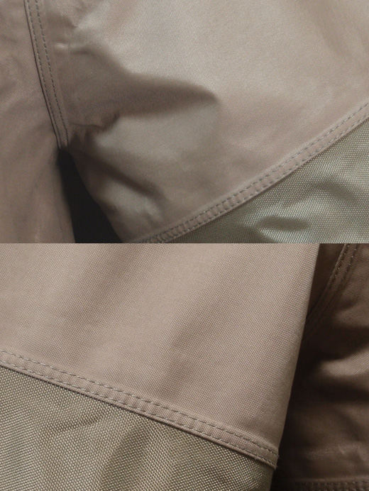 エントラント部分は、東レの生地を同社国内工場で加工したものです。210Dナイロンのエントラント生地の既製品がなかったため、東レより生地見本を取り寄せ、染色テストし、さらに染色&エントラント加工後に水圧・透湿テストをするなどして性能を確認しようやく実現したものです。(エントラントGUは東レの登録商標です)
