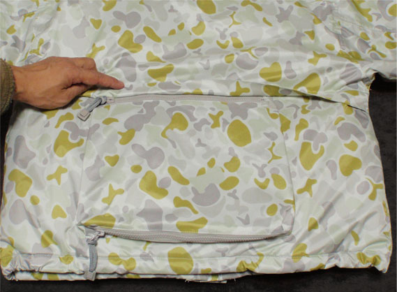 ジャケットの裾(ドローコードで調整できます。コードの端がブラブラしないように専用の収納ポケットがついています)