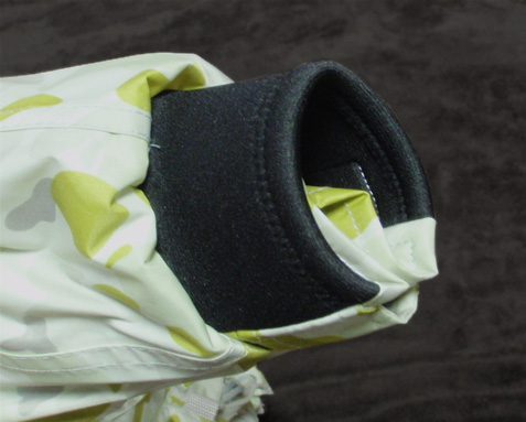 袖口は、水の浸入を防ぐため半分がネオプレーン素材、ベロクロでしっかり締めれば不愉快は水の浸入はありません。
